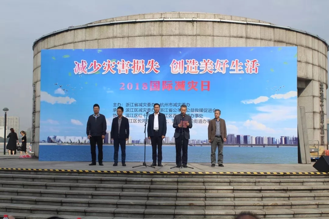2018年10月12日上午,在杭州市滨江区射潮广场举行了2018国际减灾日主题宣传活动,我校贸易系志愿者受公羊会邀请参加了此次活动。本次活动由浙江省减灾委办、杭州市减灾委办主办,滨江区减灾委办和浙江省公羊会公益救援促进会承办,省、市和各区、县(市)民政部门负责人及市民群众200余名参加了活动。