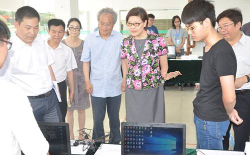 刘净非一行察看了我院运动场馆、学院食堂、学生宿舍、实训中心、图书信息中心等重点办学场所。重点查看了实训中心和图书馆,在实训中心,看到电子商务实训室有学生在拍摄产品图片,刘净非详细询问了学生创新创业的情况,得知有的在校生每个月电商营业额达到20多万元,她感到非常高兴,她说,这样的情况应该多多鼓励,学生没有毕业就等于已经就业了。在我院和顺风快递公司共同成立的校内物流实训中心,刘净非和学生进行了交流,了解学生做快递的营收情况以及和相关课程的关系。最后参观了图书馆,馆长罗加老师详细介绍了图书馆藏情况以及电子书目的相关情况。