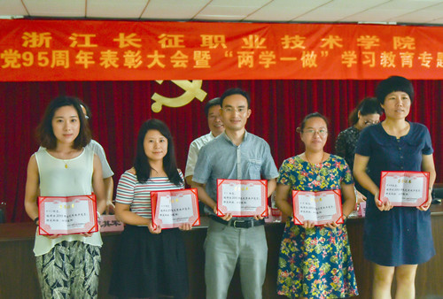 2016年6月22日下午,浙江长征职业技术学院建党95周年表彰大会暨“两学一做”学习教育专题党课在学院党员之家隆重举行,学院副院长杜宝山、副院长党委副书记王其军、工会主席洪骏、党委副书记张乐弟以及2015年度先进基层党组织、优秀共产党员和优秀党务工作者代表、新党员代表以及部分教职工党员近100人参加了会议,会议由工会主席洪骏主持。