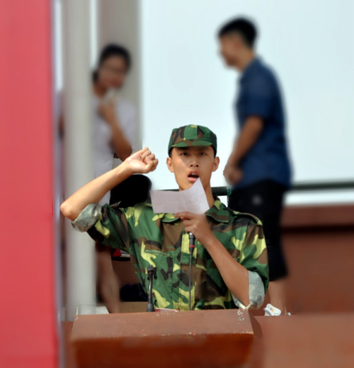 最后商务系卢芬老师代表教师发言,贸易系许佳顺同学代表新生发言,新生宣誓,由会计系学生傅文韬领誓,以作为长征学院的一名学生而感到骄傲和光荣。整个活动整齐有序,广大新生树立了良好的军人形象和大学生风采。