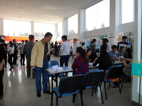 商务系一直以来非常重视学生毕业前的顶岗实习。为了向社会培养应用型人才,使学生相对于本科院校毕业学生的特殊竞争力,近年来,已与顺风速运、沃尔玛、网迷科技等27家单位实行了“校企合作”。为了此次招聘会,在学院副院长杜宝山的领导下,商务系主任李庆海及全体教师提前一个多月就联系、走访校外实习实训就业基地,联系用人单位,筛选就业岗位,并提前两周相继邀请企业进学校宣讲,使学生们对实习和就业有一个明确的规划和打算。有了前期的准备,招聘会非常成功,现场相当热烈。在各个展位前,招聘单位工作人员热情地向同学们介绍本单位的运营状况、员工工资待遇和工作环境等求职者比较关注的问题,同时也提出了应聘人员应具备的条件。
