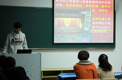 2012年12月9日—11日晚自习,计信系各班举行了主题为“学习十八大精神,争做优秀大学生”的宣讲活动。