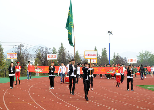 庄严的奏国歌仪式后,学院副院长王其军为本次运动会致开幕词,“鼓励加强学院体育工作,努力提高学生整体健康水平,促进学生德智体美全面发展,从而形成浓厚的体育文化氛围。”