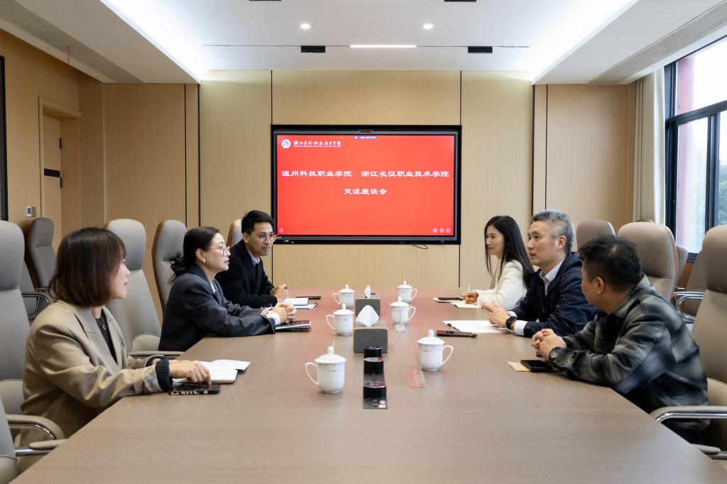 近日,温州科技职业学院纪委书记胡剑波一行来我校考察调研。学校党委副书记、纪委书记张乐弟热情接待,双方围绕党风廉政建设、清廉学校建设、廉洁文化育人等工作展开深入交流。