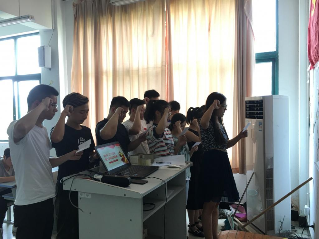 会议在雄壮的《国际歌》中开始。首先举行预备党员宣传仪式。12位去年11月加入党组织的学生党员在党支部委员王甲平老师的带领下进行了入党宣誓。