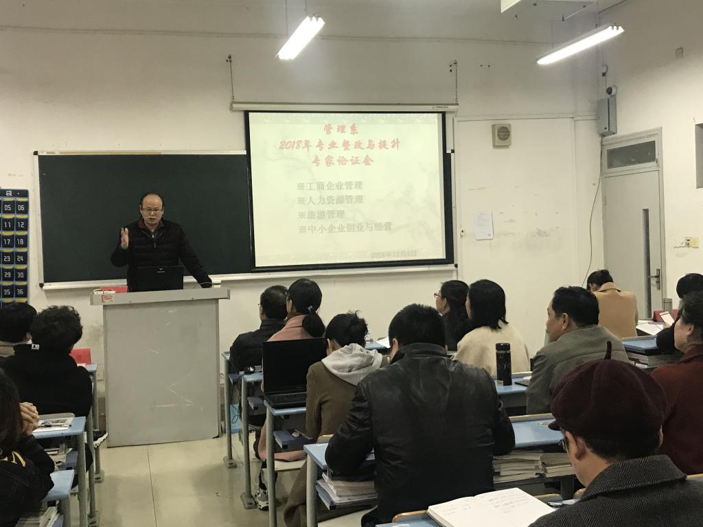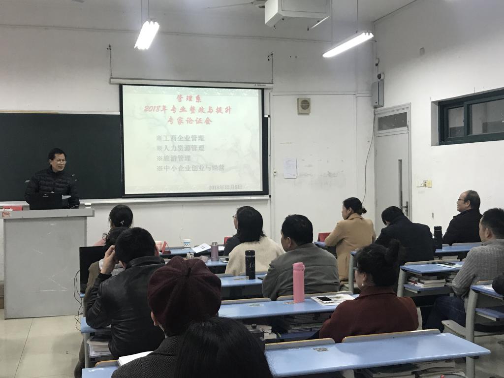 12月5日下午,管理系在1305教室召开“2018年专业整改与提升”专家论证会。论证会上,许迈进副院长和杭州鸿信企业管理咨询有限公司王丽芳总经理、杭州西溪湿地洪园胡蓉经理组成专家组,管理系全体教师参加了论证会,论证会由管理系主任汪亚明教授主持。