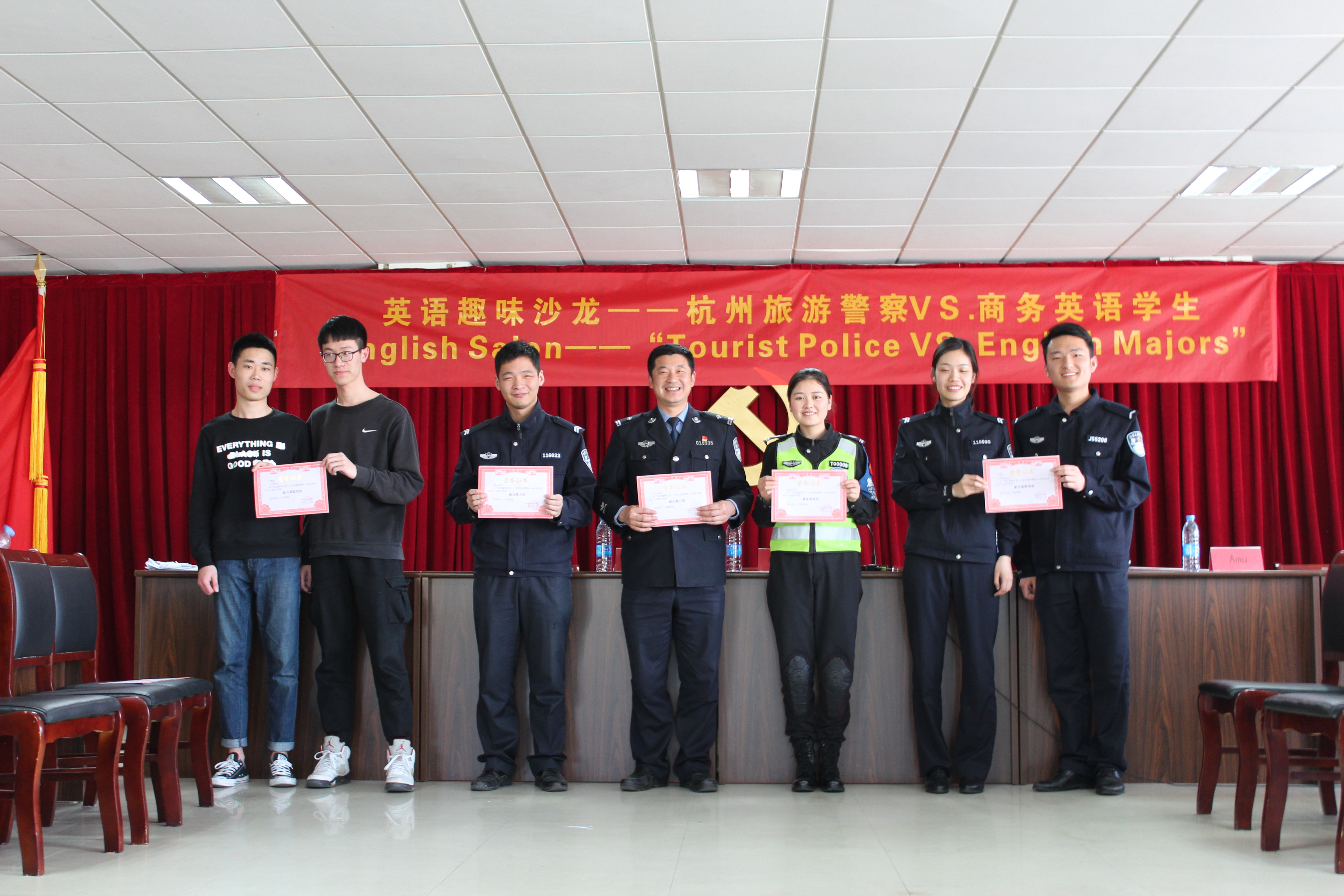 3月28日下午,应用语言系在行政楼“党员之家”成功举办了一场英语趣味沙龙。该活动是商务英语专业的社会服务项目“警务英语教学实践”的一部分,旨在通过轻松、快乐的英语交流活动来提高旅游警察与商务英语专业学生的英语口语表达能力和英语学习兴趣,丰富学生们的校园文化生活。商务英语专业的学生和杭州市公安局西湖风景名胜区分局的旅游警察们共同参与了此次活动。