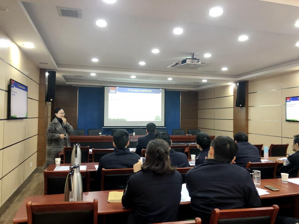 会后,商务英语教研室金晶和汤丽拿老师共同为分局民警上了一堂生动而实用的英语公开课,主题涉及用英语介绍六和塔景区及进行英语的问路和指路。参加培训的民警们边听边记边读。课后青年民警们纷纷表示受益匪浅,今后会将服务英语技能运用到现场工作中去。