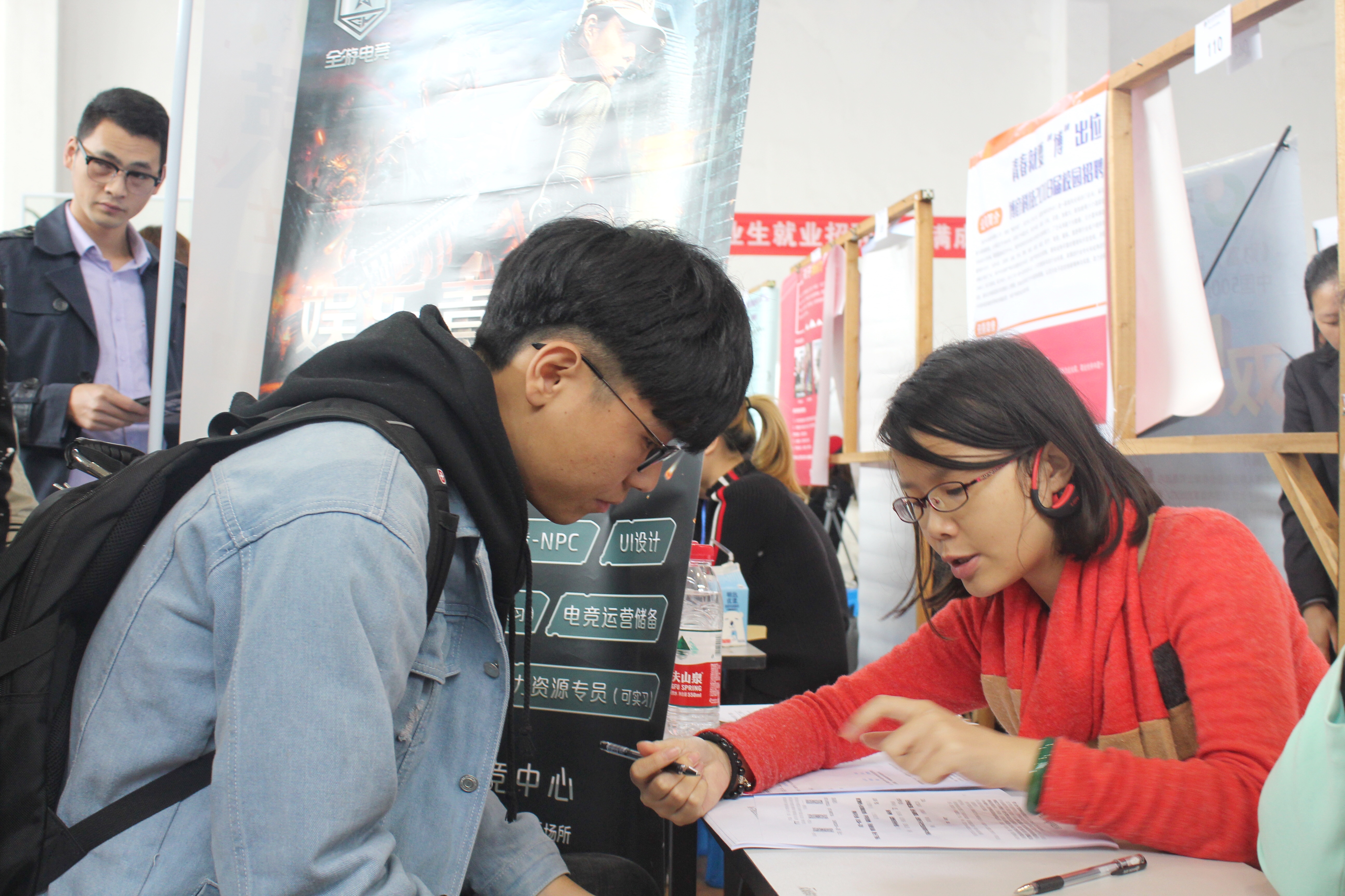 早上八点左右,各企业的参会人员就陆续来到学校,平静的校园霎时热烈起来,信心满满的学生们手持自荐书和简历与招聘单位热情地交谈着。一个小时之后,会场人员达到高峰,一直到中午十二点多,还有很多同学和用人单位在热烈交流。下午一点半后,其中20家企业在校内举行了宣讲会,让学生们对这些企业的情况和就业前景有了更多了解。