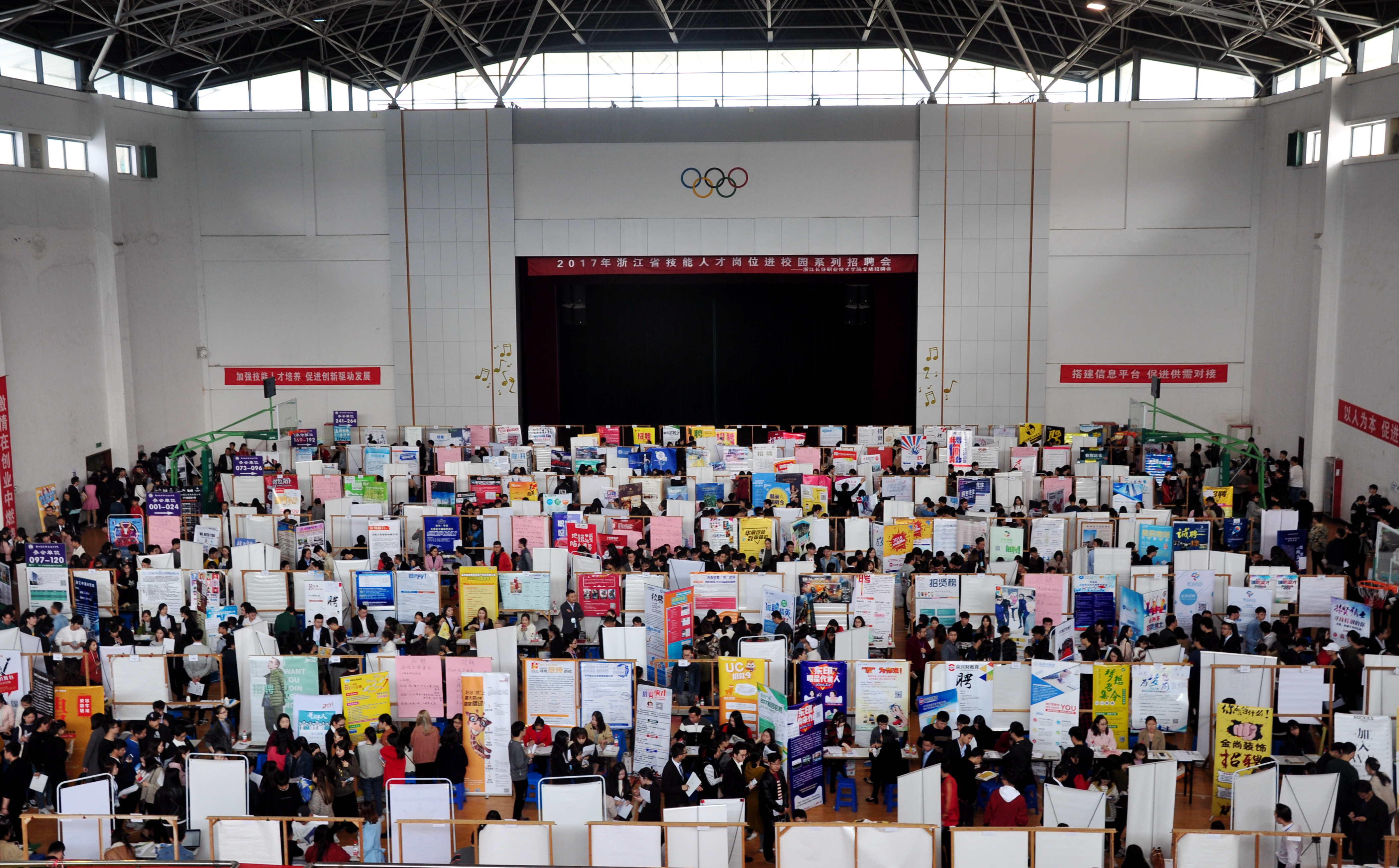 阳光灿烂,碧空如洗。11月8日,浙江长征职业技术学院迎来了 “2017年浙江省技能人才岗位进校园系列招聘会”,本次招聘会由浙江省人力资源和社会保障厅主办,浙江省就业管理服务局、浙江省职业介绍服务指导中心、浙江省职业技能教学研究所与我院共同承办。招聘会吸引了浙江天煌科技实业有限公司、浙江大华建设集团有限公司、杭州迪火小二科技有限公司、浙江中原物业顾问有限公司等三百五十多家优秀的企业前来参加,为我院毕业生提供了9800多个招聘岗位。