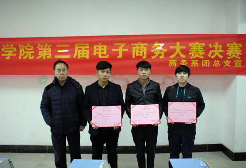 2016年1月8日(周五)下午13:30,由商务系主办的“浙江长征职业技术学院第三届电子商务竞赛”, 在2号教学楼2204教室举行了决赛和颁奖仪式,大赛圆满落幕。14市场营销一班由俞寅炎、潘成煜、林哲三位同学组成的团队, 凭借项目《快教我-学习靠我》获得了本次大赛的第一名,他们即将代表学院参加浙江省电子商务竞赛和浙江省大学生电子商务竞赛。