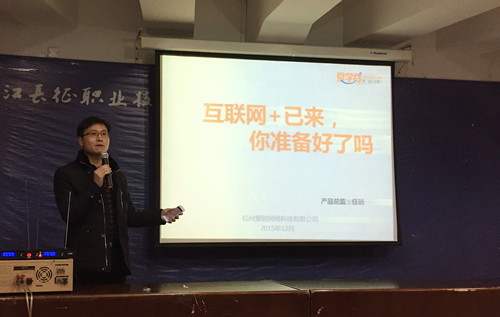 杭州爱财网络科技有限公司的产品总监任远讲座现场