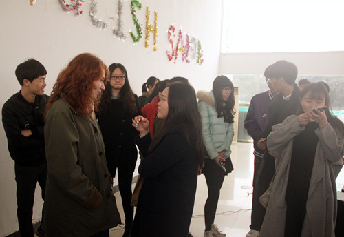 本次活动中安排了主题演讲、说单词吹蜡烛、单词接龙等游戏,让大家体会到了说英语的妙趣,使学生口语水平得到了一定的锻炼和提高。英语沙龙还邀请了近10名外国留学生参与,与学生互动交流,增加了活动的乐趣!