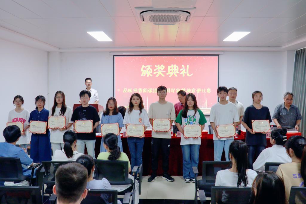 6月16日晚, 品味书香阅读活动与科学家精神宣讲比赛总结表彰会在图书馆报告厅顺利举行。副院长许迈进、图书馆馆长李春辉、党政办副主任李江波、科研处苏若葵老师参加总结表彰会。学生处章剑飞处长主持总结表彰会。
