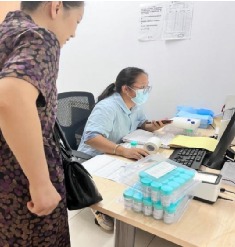 2021级健康大数据专业目前共有4人在闲林社区卫生服务中心实习,分别在慢病科、体检科和儿童保健门诊。张微星和陈丹同学在四楼体检科工作,张微星同学负责记录妇科“两癌筛查”的档案录入,陈丹同学在B超室负责打印B超单和叫号管理工作,他们对待每一位病人都有条不紊,耐心细致。胡炳柽同学在二楼儿童保健门诊负责登记和预检工作,帮小朋友称体重量身高,解答家长的疑问。章煜辰同学在慢病科,负责记录糖尿病病人病历和为糖尿病病人糖足和视力筛查和测量。